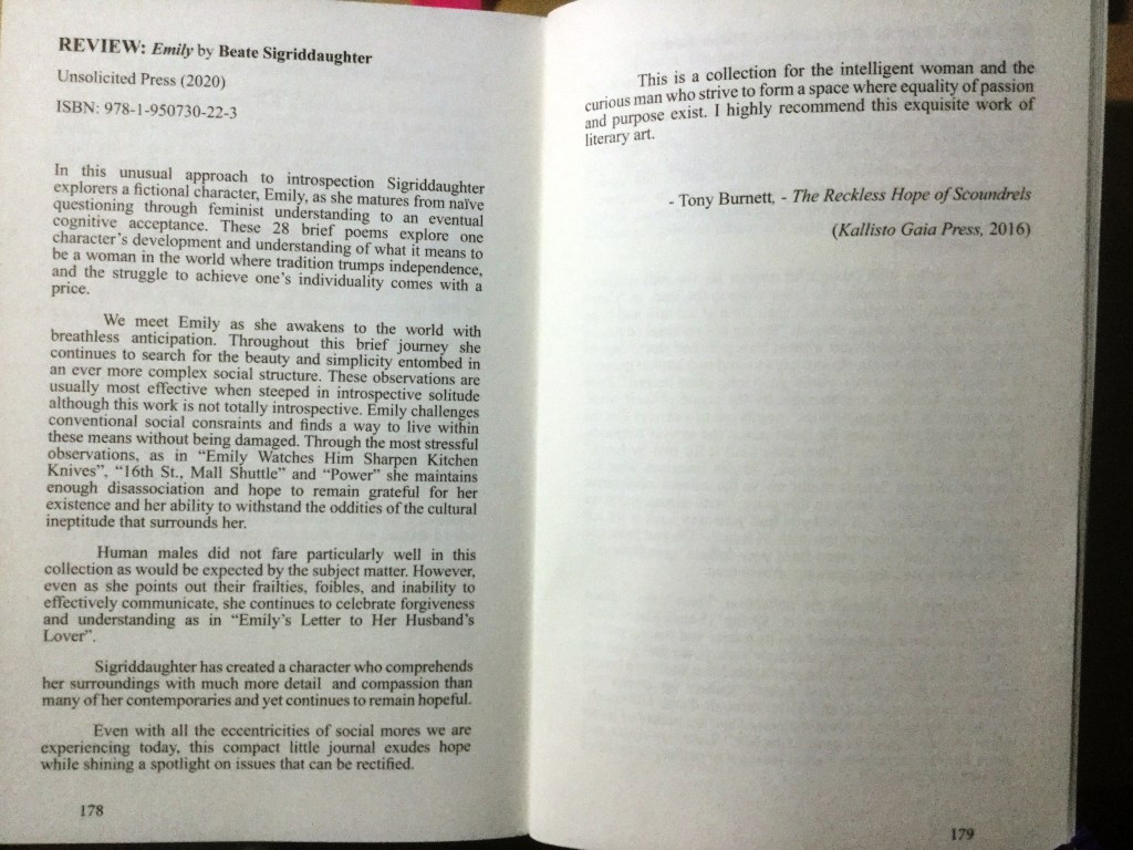 Unsolicited Press published my chapbook Emily (February 2020). Here is a link to their February 18, 2020 announcement of availability.